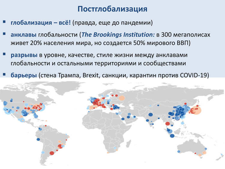 Мегаполисы создают половину мирового ВВП, но они же и превращаются в очаги заражения коронавирусом (хотя мы и продолжаем считать происходящее мировой пандемией). И это ставит под угрозу постиндустриальную экономику, которая стала экономикой сетей и потоков.