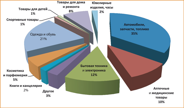 48% оборота приходится на продуктовый ритейл, остальное — на тех, кто торгует непродовольственными товарами. Рост продаж наблюдается в сегментах бытовой техники и электроники, товаров для дома и ремонта, а также аптечных и медицинских товаров. Больше всех тратят в магазинах москвичи и жители нефтяных регионов. В аутсайдерах по потреблению — Южная Сибирь и Северный Кавказ.