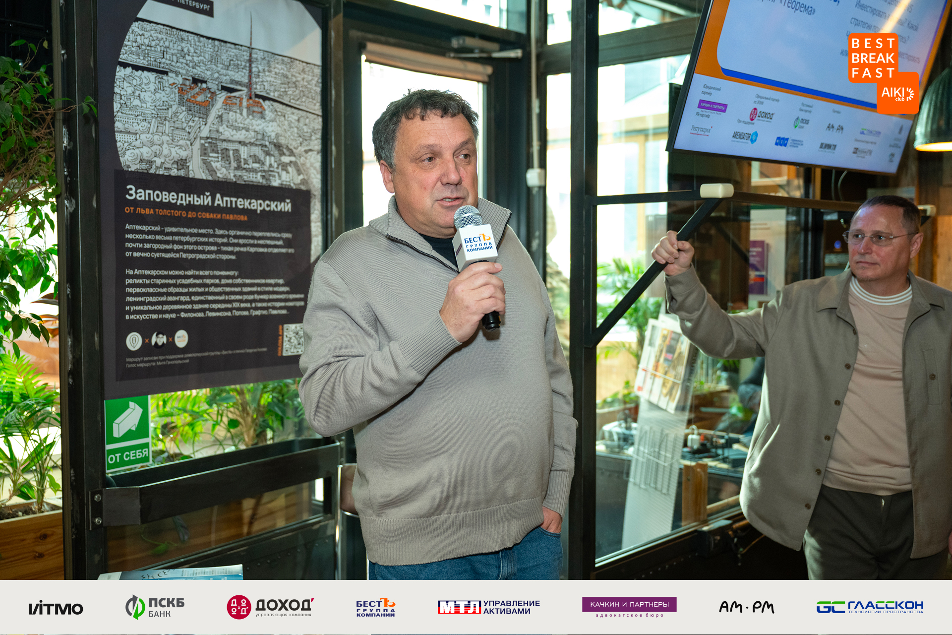 Вели мероприятие Георгий Рыков, генеральный директор «БестЪ. Коммерческая недвижимость» и Екатерина Андреевская, основатель и соучредитель петербургского музея-театра «Сказкин Дом», основатель детского города профессий КидБург, музея ЛабиринтУма, Московского ЛисаПарка и «Детство Play Cafe».